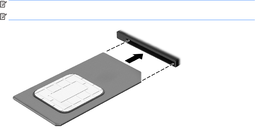 POZNÁMKA: SIM kartu vkládejte do počítače tak, jak je znázorněno na obrázku v bateriové pozici.