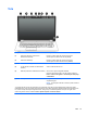 (2) Compartimento da bateria Armazena a bateria.