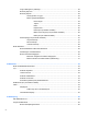 Intel Rapid Start Technology (kun på enkelte modeller) ................................... 37 Starte og avslutte hvilemodus ........................................................................... 37 Aktivere og avslutte brukeraktivert dvalemodus ................................................ 37 Bruke strømmåleren og strøminnstillinger ........................................................ 38 Angi passordbeskyttelse ved reaktivering .........................................................