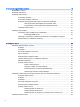 komponente desna strana 4 ekran 7 gornja strana 8 lijeva strana 5 sa donje strane 12 korištenje lozinki 60 korištenje vanjskog napajanja naizmjeničnom strujom 45 korporacijska WLAN veza 17 kritičan nivo napunjenosti baterije 44 L lampica bežične veze 9, 14 lampica čitača otiska prsta prepoznavanje 9 Lampica statusa za RJ-45 (mreža), prepoznavanje 5 lampica tvrdog diska 6 lampica web kamere, prepoznavanje 7, 19 lampica za isključen zvuk, prepoznavanje 9 lampice Adapter naizmjenične struje 5 bežično povezivan