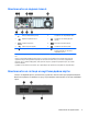 - Компоненти на лицевия панел Конфигурацията на устройствата може да се различава според модела. Някои модели имат празно капаче, което покрива едно или повече от гнездата за устройства. 1 Тънко оптично устройство (допълнително) 5 Съединител за слушалки 2 USB 2.0 портове (черни) 6 Двупозиционен бутон за захранване 3 USB 3.