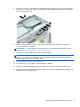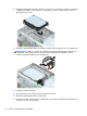 8. Издърпайте лостчето за освобождаване до задната част на твърдия диск навън (1).