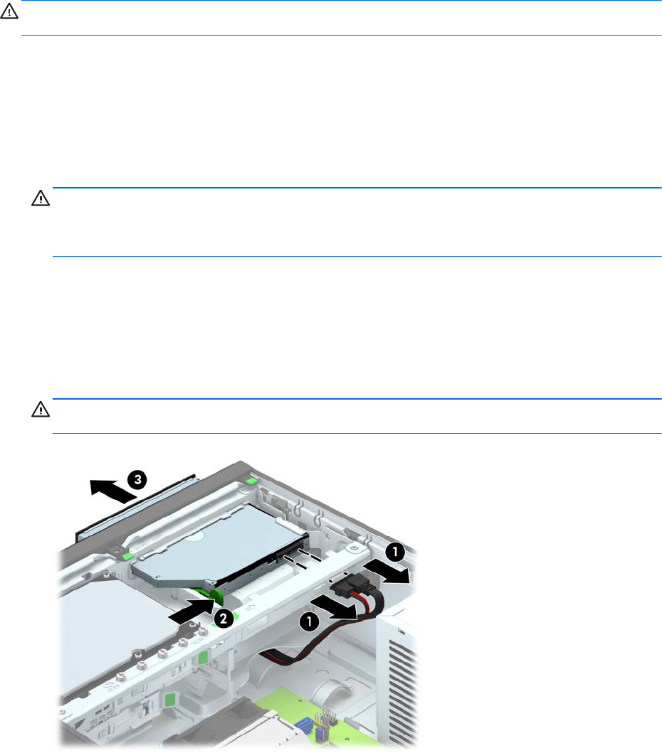 μονάδας οπτικού δίσκου, πιέστε την πράσινη ασφάλεια απελευθέρωσης στη δεξιά πίσω πλευρά