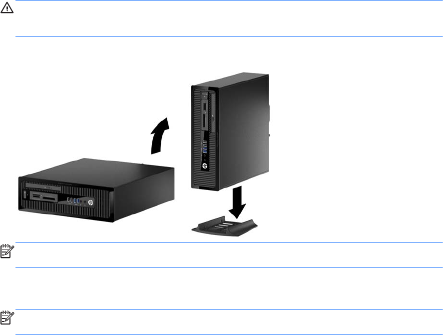 お使いの省スペース型コンピューターは、HP から購入できるオプションの縦置き用スタンドを利用