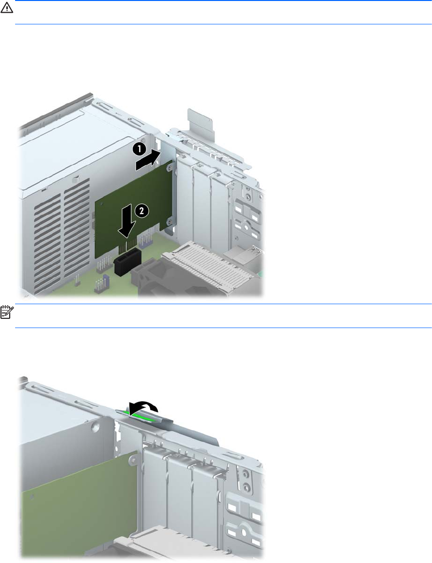 13. スロット カバー固定ラッチを回転させて元の位置に戻し、拡張カードを所定の位置に固定しま