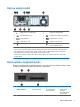 - Deli na sprednji plošči Konfiguracija pogonov se lahko razlikuje glede na model računalnika. Nekateri modeli imajo zaščitno ploščo, ki pokriva enega ali več ležišč za pogon. 1 Tanek optični pogon (izbirno) 5 Priključek za slušalke 2 Vrata USB 2.0 (črna) 6 Gumb za napajanje z dvema stanjema 3 Vrata USB 3.0 (modra) 7 Lučka za dejavnost trdega diska 4 Priključek za mikrofon 8 3,5-palčni bralnik medijskih kartic (dodatno) OPOMBA: Lučka za napajanje med delovanjem običajno sveti belo.