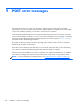 This appendix lists the error codes, error messages, and the various indicator light and audible
