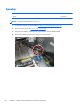 6. From the inside of the chassis, slide the speaker toward the right to remove it from its holder, and