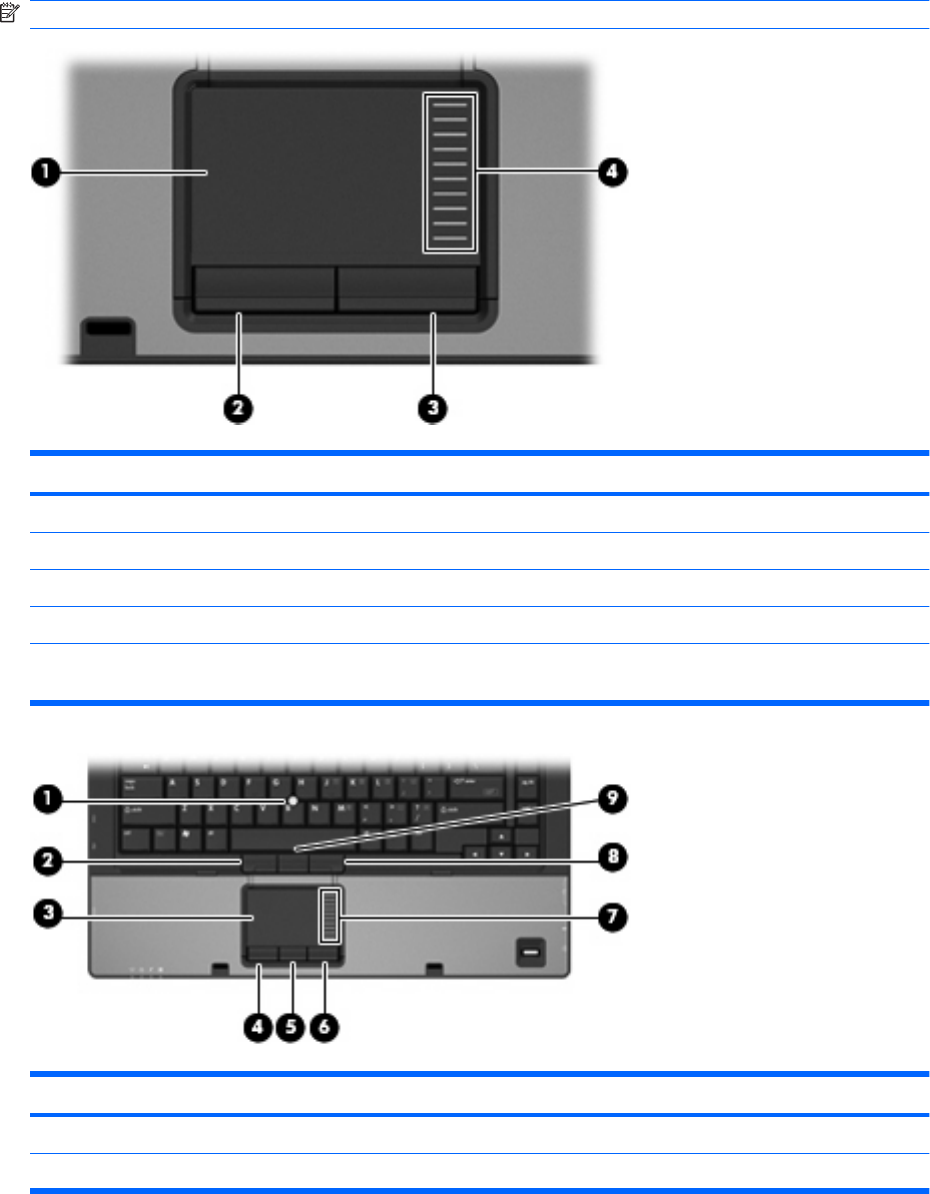 (1) TouchPad Pomiče pokazivač i bira ili aktivira stavke na zaslonu.