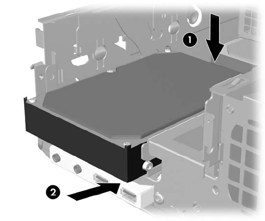 ภาพ 2-28 การติดตั้งไดรฟลงในชองใสไดรฟขนาด 3.5 นิ้ว (ฮารดไดรฟแสดงในรูป)