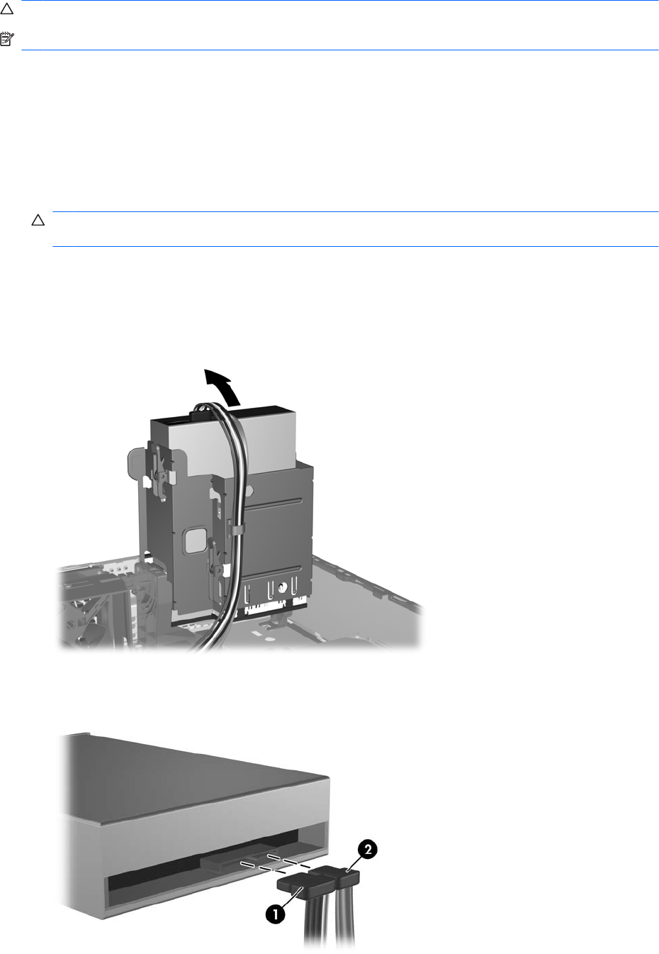 将电源电缆 (1) 和数据电缆 (2) 从光驱背面断开。