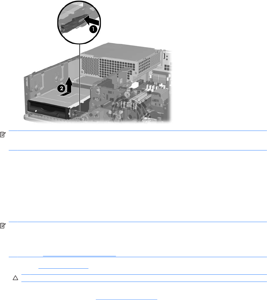 器固定器锁定器时,向后滑动驱动器直到滑不动为止,然后将其提出驱动器框架 (2)。