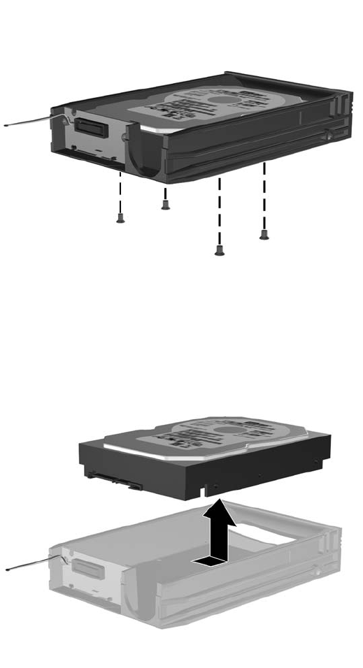 卸下硬盘驱动器托架底部的