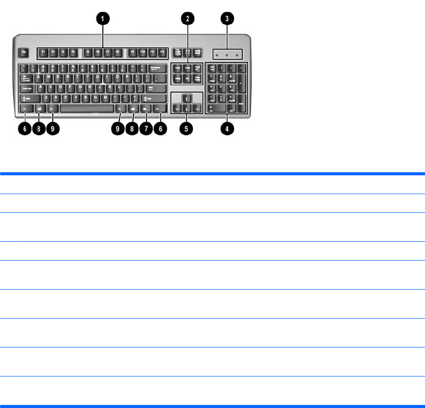 3 Status Lights Indicate the status of the computer and keyboard settings (Num Lock, Caps Lock,