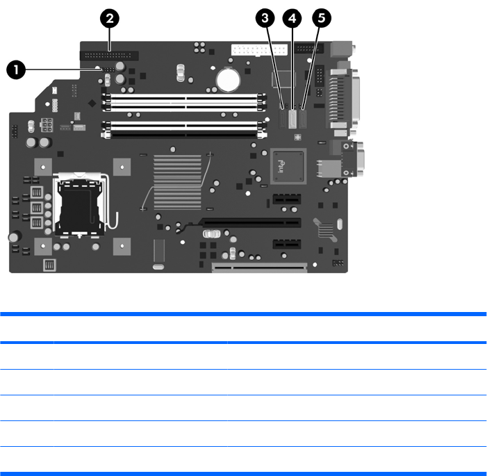 Refer to the following illustration and table to identify the system board drive connectors.