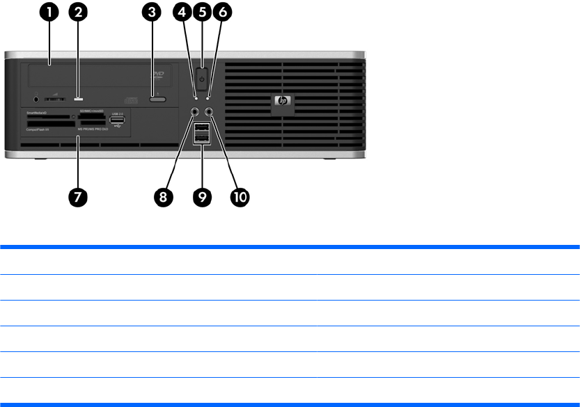 2 Optical Drive Activity Light 7 3.5-inch Media Card Reader (optional)