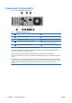 Esipaneeli komponendid Kettaseadme konfiguratsioon võib mudeliti erineda. Joonis 1-2 Esipaneeli komponendid Tabel 1-1 Esipaneeli komponendid 1 5,25-tolline optilise ketta seade2 6 Toite märgutuli 2 Optilise ketta seadme märgutuli 7 3,5-tolline mälukaardilugeja (valikuline)1 3 Optilise ketta väljastusnupp 8 Mikrofoni ühenduspesa 4 Kõvakettaseadme märgutuli 9 USB- (Universal Serial Bus) liidesed 5 Kaheasendiline toitelüliti 10 Kõrvaklappide ühenduspesa MÄRKUS.