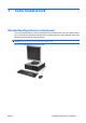 11. Asetage arvuti selliselt, et parem külg oleks allpool. Joonis 2-2 Lauaarvuti muutmine torniks MÄRKUS. tugialust. Et arvuti seisaks püstasendis kindlamalt, soovitab HP kasutada juurdeostetavat torni 12. Ühendage toitejuhe ja kõik välised seadmed ning lülitage arvuti sisse. 13. Kinnitage kõik turvaseadmed, mis eemaldati või lülitati välja arvuti külgpaneeli eemaldamisel. MÄRKUS. Õhu juurdepääsuks jätke arvuti ümber igas suunas vähemalt 10 cm vaba ruumi.