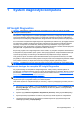 Tabela 2-1 Rozwiązywanie problemów ogólnych (ciąg dalszy) System nie uruchamia się i diody LED na panelu przednim komputera nie migają. Przyczyna Rozwiązanie Naciśnij przycisk zasilania i przytrzymaj go w tej pozycji przez krócej niż 4 sekundy. Jeżeli dioda dysku twardego nie zacznie się świecić na zielono: PLWW 1. Sprawdź, czy komputer jest podłączony do sprawnego gniazda sieci elektrycznej. 2.
