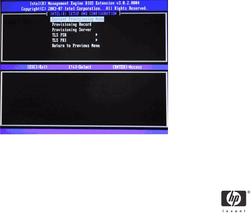 - 11. Press Ctrl-P during POST to enter MEBx Setup again.