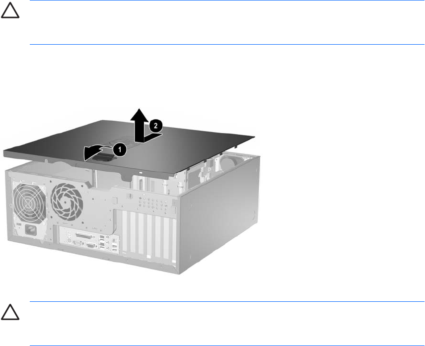 6. Lift up on the access panel handle (1), slide the access panel back about 1.25 cm (1/2 inch), then