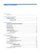 Table of contents 1 Product Features HP LCD Monitors ................................................................................................................................. 1 2 Safety and Maintenance Guidelines Important Safety Information ................................................................................................................ 3 Maintenance Guidelines .......................................................................................................................
