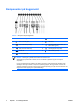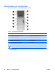 Tastatur Tabel 1-4 Tastaturkomponenter 1 DAWW 1 Funktionstaster Udfører specielle funktioner afhængigt af det program, der anvendes. 2 Redigeringstaster Omfatter følgende: Insert, Home, Pg Up, Delete, End og Pg Dn. 3 Statuslysdioder Viser status for computerens eller tastaturets indstillinger (Num Lock, Caps Lock og Scroll Lock). 4 Numeriske taster Fungerer som på en regnemaskine. 5 Piletaster Bruges til at navigere gennem et dokument eller et websted.