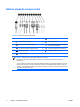 Terpės kortelės skaitytuvo komponentai Terpės kortelių skaitytuvas yra pasirenkamas įrenginys, galimas tik kai kuriuose modeliuose. Šioje iliustracijoje ir lentelėje rasite terpės kortelių skaitytuvo komponentus.