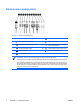 Komponente čitača medijskih kartica Čitač medijskih kartica je opcioni uređaj koji je upotrebljiv samo na nekim modelima računara. Pogledajte sledeću sliku i tabelu da biste se upoznali sa komponentama čitača medijskih kartica.