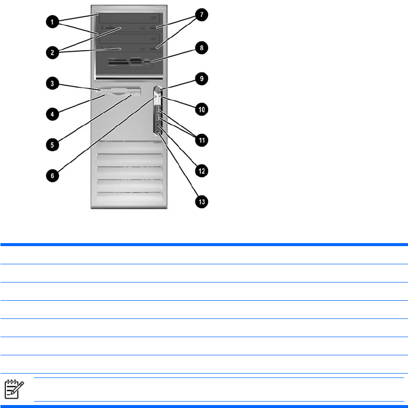 Some models are configured with a media card reader in the external 3.5-inch drive bay. Other models have a bezel