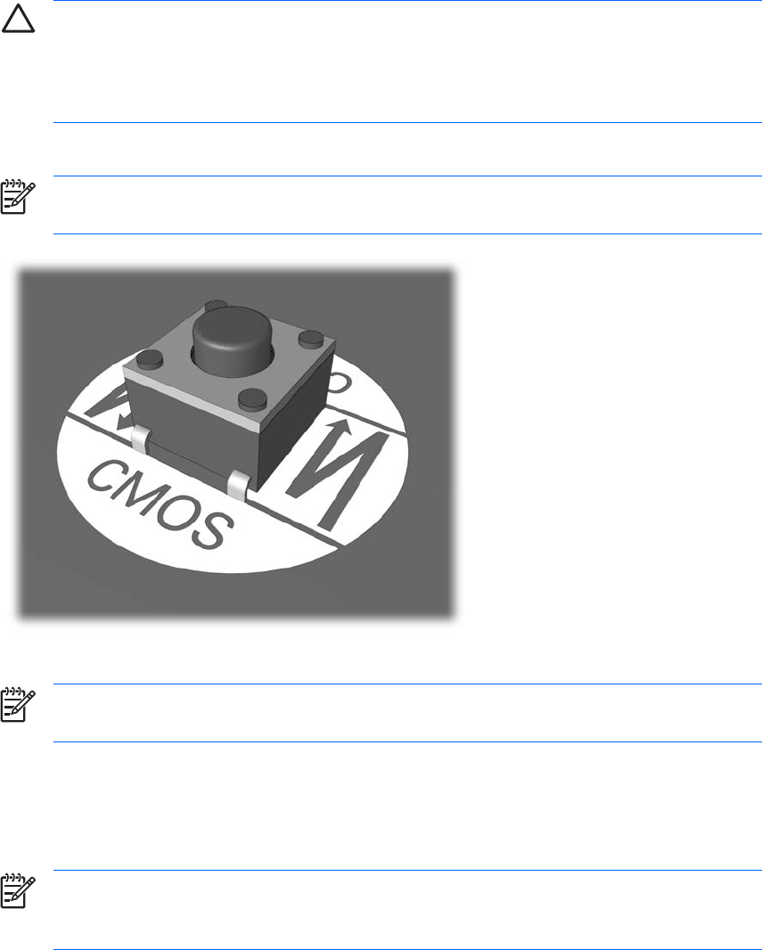 OBS! Kontrollera att du har dragit ut nätsladden från vägguttaget. CMOS-knappen