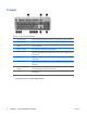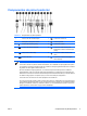 Teclado Tabela 1-3 Componentes do teclado 1 4 1 Teclas de função Executam funções especiais, de acordo com a aplicação de software utilizada. 2 Teclas de edição Incluem as seguintes teclas: Insert, Home, Page Up, Delete, End e Page Down. 3 Indicadores luminosos de estado Indicam o estado do computador e das definições do teclado (Num Lock, Caps Lock e Scroll Lock). 4 Teclado numérico Funcionam como as teclas de uma calculadora.