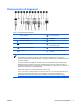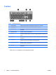 Komponenter på frontpanelet Drevkonfigurationen kan variere, afhængigt af modellen. Tabel 1-1 Komponenter på frontpanelet 1 Optiske 5,25"-drev1 7 Udløserknapper for optiske drev 2 Lysdioder for aktivitet på optiske drev 8 Disketteudløserknap (valgfri) 3 3,5"-diskettedrev (valgfrit)2 9 Afbryderknap med dobbelt funktion 4 Lysdiode for aktivitet på diskettedrevet (valgfrit) 10 Lysdiode for strømforsyning 5 Lysdiode for aktivitet på harddisken 11 Hovedtelefonstik 6 Mikrofonstik 12 USB 2.