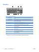Tagapaneeli komponendid Tabel 1-2 Tagapaneeli komponendid 1 Toitejuhtme ühenduspesa 7 RJ-45-tüüpi kaabli ühenduspesa 2 Toitepinge ümberlüliti 8 Paralleelliidese ühenduspesa 3 PS/2-hiire pistikupesa (roheline) 9 Kuvarikaabli ühenduspesa 4 PS/2-klaviatuuri ühenduspesa (lilla) 10 Heliväljundi pistikupesa toitega heliseadmete jaoks (roheline) 5 USB-liides 11 Helisisendi ühenduspesa (sinine) 6 Jadaliides 12 Digitaalvideoliides (Digital Video Interface; DVI–D) kuvari ühendamiseks Märkus