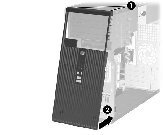 Asetage arvuti püstiasendisse. Asetage esipaneeli kaks ülaosas asuvat kinnitushaaki alusraami