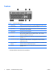 Componenti del pannello posteriore Tabella 1-2 Componenti del pannello posteriore 1 Connettore per il cavo d'alimentazione 7 Connettore di rete RJ-45 2 Selettore di tensione 8 Connettore parallelo 3 Connettore mouse PS/2 verde 9 Connettore monitor 4 Connettore tastiera PS/2 porpora 10 Connettore line-out per dispositivi audio alimentati (verde) 5 Connettori USB (Universal Serial Bus) 11 Connettore audio line-in (blu) 6 Connettore seriale 12 Connettore monitor Digital Video Interface