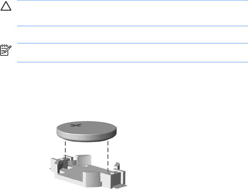 b. Nadomestno baterijo vstavite s pozitivnim polom obrnjenim navzgor. Nosilec baterije jo