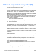 Tabla 6 Configuración de la computadora—Avanzada (para usuarios avanzados) (continúa) Encendido del BIOS Permite configurar el equipo para que se encienda automáticamente a la hora que usted especifique. Dispositivos incorporados Permite configurar recursos para o desativar dispositivos incorporados en el sistema (controlador de disquete, puerto en serie o puerto paralelo). Dispositivos PCI ● Enumera los dispositivos PCI actualmente instalados y sus configuraciones IRQ.
