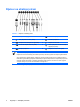 Dijelovi čitača medijskih kartica Čitač medijskih kartica je dodatni uređaj koji je dostupan samo na nekim modelima. Pomoću ove slike i tablice prepoznat ćete dijelove čitača medijskih kartica.
