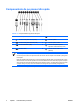 Tastatură Tabelul 1-4 Componentele tastaturii 1 ROWW 1 Taste funcţionale În funcţie de aplicaţia software utilizată, efectuează funcţii speciale. 2 Taste de editare Includ următoarele: Insert, Home, Page Up, Delete, End şi Page Down. 3 Indicatoare luminoase de stare Indică starea computerului şi setările tastaturii (Num Lock, Caps Lock şi Scroll Lock). 4 Taste numerice Funcţionează ca tastatura unui calculator de buzunar.