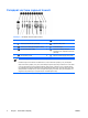 Клавіатура Таблиця 1-4 Компоненти клавіатури 1 UKWW 1 Функціональні клавіші Мають спеціальні функції залежно від програми, що використовується. 2 Клавіші редагування Включають наступні клавіші: Insert, Home, Page Up, Delete, End і Page Down. 3 Індикатори стану Вказують стан комп’ютера і налаштування клавіатури (Num Lock, Caps Lock і Scroll Lock). 4 Цифрові клавіші Працюють як клавіатура калькулятора. 5 Клавіші зі стрілками Використовуються для переходу в документі чи на веб-сайті.