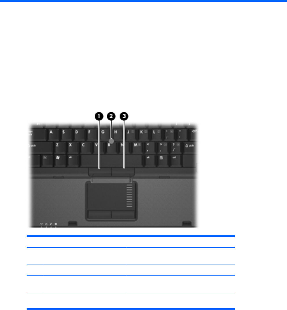 A ilustração e a tabela a seguir descrevem os dispositivos apontadores do computador.