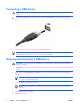 Connecting a USB device CAUTION: device. ▲ To prevent damage to a USB connector, use minimal force to connect a USB To connect a USB device to the computer, connect the USB cable for the device to the USB port. You will hear a sound when the device has been detected. NOTE: The first time you connect a USB device, the “Found New Hardware” message is displayed in the notification area, at the far right of the taskbar.