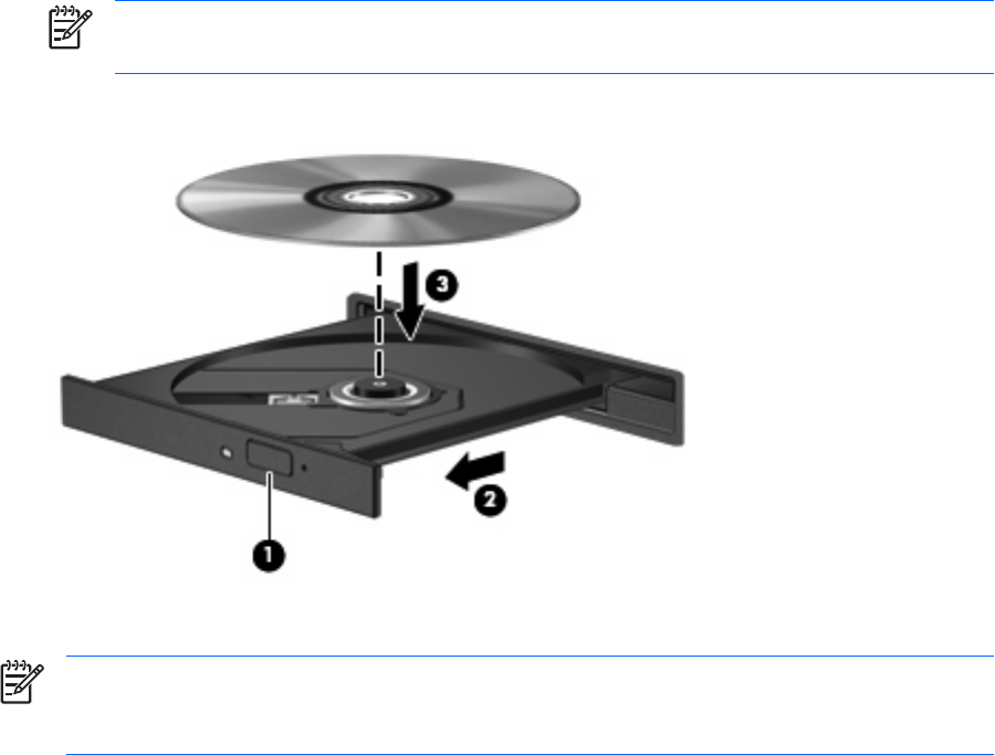 5. Drücken Sie die Disc (3) vorsichtig bis zum Einrasten auf die Spindel im Medienfach.
