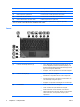 Componentes da parte posterior Componente Descrição (1) Permite ligar um cabo de segurança opcional ao computador. Ranhura do cabo de segurança NOTA: O cabo de segurança foi desenvolvido para funcionar como factor de desencorajamento, mas poderá não evitar que o computador seja roubado ou indevidamente utilizado. PTPT (2) Conector de alimentação Liga um transformador CA.