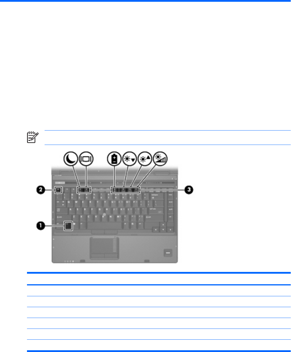 Hotkeys are combinations of the fn key (1) and either the esc key (2) or one of the function keys (3).