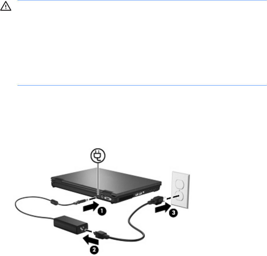 Για να συνδέσετε τον υπολογιστή σε εξωτερική παροχή εναλλασσόµενου ρεύµατος: