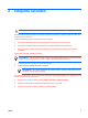 1 Upravljanje napajanjem i smještaj lampica Sljedeća slika i tablica utvrđuju smještaj upravljanja napajanjem i lampica. NAPOMENA: Vaše se računalo može razlikovati od onoga prikazanog na slici u ovom poglavlju. (1) HRWW Komponenta Opis Gumb za uključivanje i isključivanje ● Kad je računalo isključeno, pritisnite gumb da biste uključili računalo. ● Kad je računalo uključeno, pritisnite gumb da biste isključili računalo.