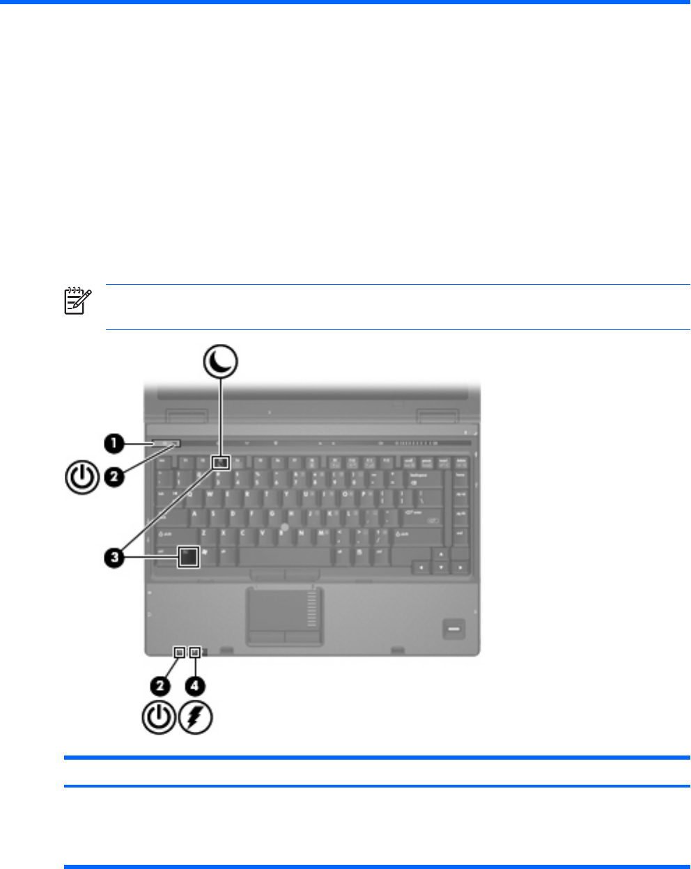 A következő ábra és táblázat a számítógép áramellátást szabályozó gombjainak és az áramellátás