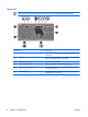 (7) Utmatningsknapp för PC Card-kort Matar ut ett PC Card-kort från PC Card-kortplatsen.